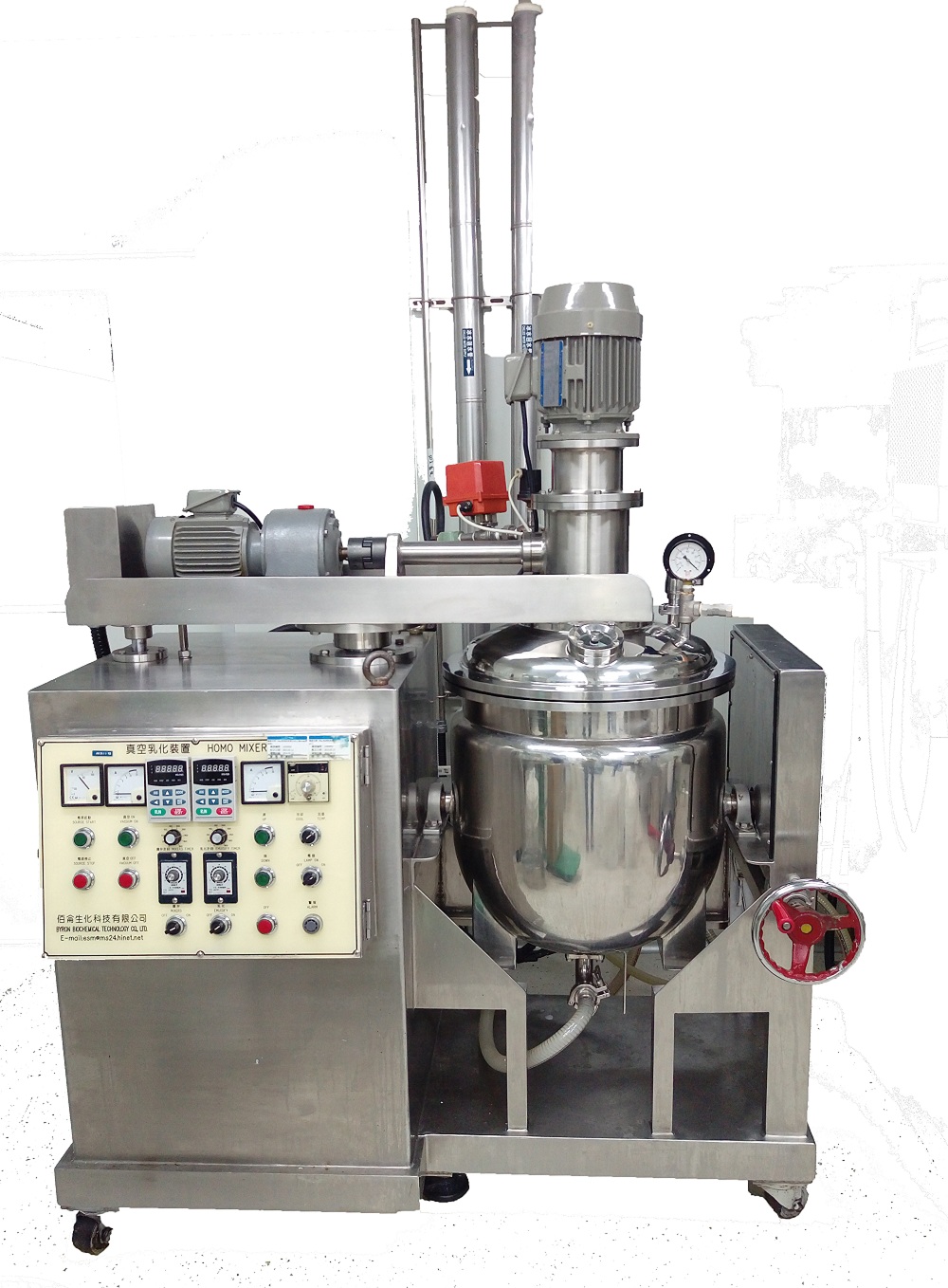 - 超高黏度真空乳化攪拌機系採用高速乳化及慢速攪拌 合併
